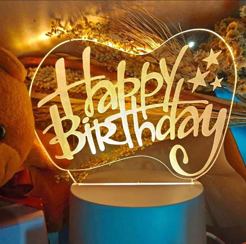 Happy Birthday Creative Table Desk Warm White Acrylic Light